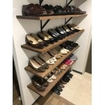 棚板はほかの部分と共通の素材、仕上げにしましょう。 ステー材は鉄の少し焼いたような雰囲気が素敵な黒皮鉄という部材を採用しましょう。