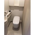 手洗カウンターはそのままご使用され、タンクレストイレへ入れ替えし、床と壁の貼替えをしました。