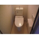 冷え性の奥様には温水洗浄便座を採用。 便器もあたたかく快適にトイレをご使用になられることと思います。 小花柄のクロスで清潔感のあるトイレ空間となりました。