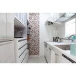 白をベースに仕上げ材を選定し明るさを確保。 キッチンは引き出し収納をメインにし収納力をアップしました。背面収納の一部に家電ストッカーを設置しメインの家電とゴミ箱を収納。既存と作業性を変えない様にカウンター部も確保しました。