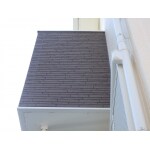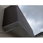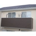 降った雨が帯板に侵入しないように、装飾のための帯板は思い切って撤去しました。 ベランダの外壁を張り替える事となったので、この機会にデザインも変えて、洋風の家に合う石目調のシックなカラーのサイディングを採用しました。