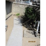 飛び石を撤去処分し、コンクリートで平滑で滑りにくい通路を設置する。