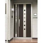 外観は2色で張り分けをしました。玄関ドアも変えてキレイになりました。