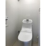 白を基調としたトイレに生まれ変わりました。配管も隠してスッキリしました。
