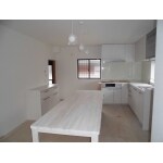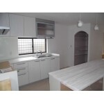 L型キッチンを採用し、真ん中に造作の大きな机を配置し、食器棚や食品庫を造って、使いやすく収納を多くしました。