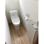 ウォシュレット一体型便座へ変更 手洗い器もスリムタイプの物へ交換しスッキリとしました。