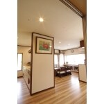 部屋を区切っていた壁の一部を取り払って、ワンルームのように設計しました。使用頻度の低い和室の面積を減らして、廊下を広くしたことが間取り上のポイント。将来的に、1階に寝室を移すことも考えた、バリアフリーの間取りです。ワンフロアで暮らしが完結する「ホテル風」がキーワードです。