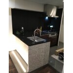 お客さまのイメージを大切に、じっくりとお話をお伺いしました。高級感のある黒色の対面式キッチンと、広い空間になるように壁を取り払う間取りの変更もご提案させていただきました。