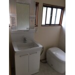 既存は、男性用の小便器と洋式便器が扉で仕切られている昔ながらのレイアウトでしたが、その2部屋を広い1部屋とし、間仕切り壁を撤去し、ネオレストと洗面化粧台を設置致しました。