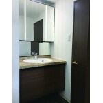 リクシルのルミシスを設置しました。 大理石の質感を再現した「ラピシアカウンター」を採用しました。 縦に配置したLED照明「フェイスフルライト」が顔全体を均一に明るく照らしてくれます。