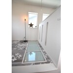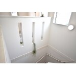 玄関の吹抜け部分を洗濯スペースに改修したい。 腰壁にスリットを設け、床の一部をガラスにしたい。