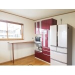 元々のキッチンには掃出し窓があり、周囲から丸見えで、その視線を遮る為に昼間でもブラインドを下げっぱなしで薄暗い空間でした。 掃出し窓を止め、高い位置に窓を設け、窓の前には、ご主人様が米山を楽しむための高さのあるカウンターを作りました。 視界を気にせず窓辺を楽しむことが出来ます。