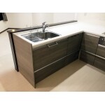 LDKのキッチンはL型対面にしているのでコンロ横にはコーナー用のキャビネットを造作しました。家電をおいたりゴミ箱を入れたりデッドスペースを活用できるようにしました。