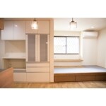 無垢のオーク材をご提案させて頂きました。 リビングの隅に小上がりの畳スペースも設置。ちょっとした休憩などに使用できます。