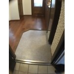 (旧株式会社LIXILリニューアルでの事例です。)玄関とキッチンの床に「フロアタイル」を貼りました。玄関の土間タイルの上にフロアタイルを上から貼りました。