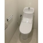シンプルなタンク一体型のトイレへ交換し、凸凹が少なく掃除も簡単になりました。 ウォシュレット機能付き、リモコンで操作が簡単になりました。 壁紙や床もホワイトへ統一したことで落ち着けるナチュラルな空間になりました。