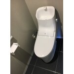 念願のウォシュレットタイプで快適なトイレになりました。タンク一体型はお洒落で掃除もラクラクです。床も壁もシックで、統一感のあるおしゃれなトイレにうまれかわりました。