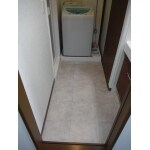 スリムな角型の洗面化粧台は洗面所をスッキリとさせてくれます。サイドは水がはねてもクロスを傷めないようにパネルを貼りました。