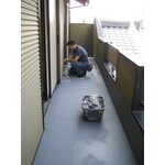 ベランダの防水(シート防水)のトップコート(塗装)が経年変化により痛んできた為の塗装の塗り替えです。約10年ぐらい経ちましたが、風や雨、日光の当たり具合によって変ってきますので、そろそろかなー?と思ったら専門家に一度見てもらって下さい。雨漏りしてからでは遅いです。