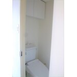 節水で、リモコンオート洗浄できるトイレにリフォーム。上に棚も付けて収納力アップ