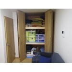 工事前写真奥の扉の左側の壁の位置が工事後の左側の壁と同じ部分です。床面はカーペットが敷いてありますが土間コンクリート面となっており、新しい床面はこの面から40cmほど高くした位置となっています。、
