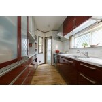 お色は、トクラスショールームで一目ぼれされた深紅(こきくれない)です。 同じ間口2700で食洗機を導入し、洗いかごはカウンターよろ無くなりました。キャビネットが引戸になり、カウンターに置きっぱなしの小物がしまい易くなりました。