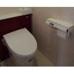 赤色のアクセントで、おしゃれなトイレに。