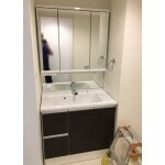 収納スペースたくさん、お掃除機能も充実しているパナソニックのシーラインをご提案させていただきました。 ダークブラウンのお色にしました。 スタイリッシュで飽きのこないデザインですっきりした洗面化粧台になりました。
