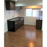 以前と変わらず壁付きI型システムキッチン。 収納力抜群、食器洗い乾燥機も装備しました。 色とデザインを変えるだけで、同じキッチン空間とは思えないほどヴィンテージな風合いのキッチンになりました。