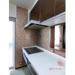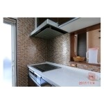 様々なタイルがある中、奥様の好きな色や、お部屋の雰囲気、清掃性などからタイルの種類や割り付けをご提案させていただきました。キッチンを取り外すことなく施工するということで、後々キッチンの修理時などに問題にならない範囲でタイルを貼るようにご提案をさせていただきました。