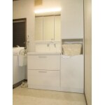 三面鏡、2段引き出しの洗面台です。