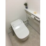 床は、足当たりが良く、お掃除がラクなクッション素材に変更し、天井と壁のクロスは白を基調とした明るいお色に張り替えました。また、便器も水アカをはじくお掃除がらくな素材のものを選び、お施主様のご要望にお応えしました。