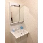 脱衣場と浴室の間に段差がありましたので高さを少し上げ、段差の解消をご提案。 以前は浴室に換気しかなかったため、今回はバス換気乾燥暖房機をおすすめしました。 洗面化粧台はお手頃なもので良いとの事でしたので、小さいものに交換いたしました。