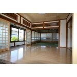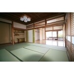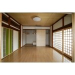 奥の10帖和室はそのままにして、手前10帖を8帖の洋間+階段上部と合わせ3帖のウォークインクローゼットを造りました。真壁の雰囲気は残しつつ違和感無い様に、淡い色のフローリング、天井はシナの目透かし張りにて仕上げました。 襖を閉めると個室、開けると大勢のお客様との団欒の場所になります。