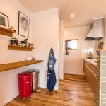 キッチンカウンターからは、LDKのようすを一望できるよう、オープンキッチンを取り入れました。奥様がお料理しながら、ご家族と会話を楽しんだり、テレビを見たりすることができます。 リビングからは、キッチンカウンターの腰壁タイルで目隠しされ、料理のようすが見えないので急な来客時にも安心。