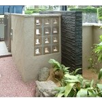 高齢者がいるので配置は大きく変えず、階段間口を広げ腰の曲がったお婆様の高さに2段手摺りを設置。雨水がたまり崩れかけていた塀を改修し、新たに黒い控え壁を設置することで土圧を軽減しました。老朽化が目立つRCの擁壁は凸凹していた1直線に水平ラインをつなげ、汚れを落とし洗出しの化粧を施しました。 敷地内の水はけ改善としては今までなかった水抜き穴をあけ、表面排水枡を新規にとり、根が張り大きくなりブロック塀を圧迫していた樹木を整理し、特に雨水が抜けにくい勝手口付近の土部分は洗出しの土間を打ち直し改善しました。今回は、モダンでセンスのいいお婆様との会話の時間をたっぷりとりました。遠くの竹林、大きくなった街路樹の景色の取り込み、大事にされてきた思い出たっぷりの庭木の数々・・・あまり出歩けなくなったお婆様の為、家にいても外が感じられるデザインを心がけ、季節が映える場所にスクリーンブロックの位置を割り出し、内と外につながりと奥行きをもたせました。又、ご高齢なので外部階段等配置はあえて大きく動かさない計画をとりました。これからも季節のうつろいを愛で、穏やかな心持で長生きして頂きたいです。