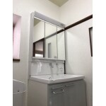 今お使いの洗面化粧台が一面鏡なので、三面鏡にすることで内側に収納がたっぷりとなり、スッキリお使いいただけます。