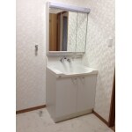 設置場所を変えて、一回り大きな洗面台と、 洗濯機置場を並べて設置することができました。