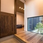 母屋の縁側、増築部玄関ホールに設けた地窓の双方から、坪庭を眺められます。家人や客人を出迎えるおもてなしの空間で、日常にほっこりとした癒やしをもたらしてくれます。 また、あえて地窓にすることで、外部との繋がりや空間の広がり、奥行き感を感じつつも、お互いのプライバシー性を確保できるよう配慮しました。