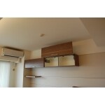 使いやすいように収納もさまざまな工夫もしています。フロアキャビネットは、CDが入るように引出しサイズを決めています。掘り込み手掛けの引出の横にある大きな1枚の扉板は、左右にスライドする引戸になっていて、引出しがすっぽり隠れるようになっています。DVDなどの電源が必要なものの収納として、電源コードが煩雑に見えないように作製収納の中に電源を設け、天板に配線が通るようにしています。 和室側に伸びた下台は、人工大理石を加工した引出収納。明るい色の効果で、空間に溶け込んでいます。