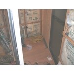 三角形の物置をリフォームし浴室、洗面室、洗濯機置き場を設置しました。既存平面図がなかったため採寸から始まり、スペースの活用、既存ドアの使用など様々な面で検討し、リフォームをすすめました。 (金額は廃材処分費、会社諸経費など別途です。)
