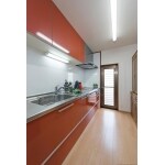 リビング側の壁を撤去して、キッチンは赤色を採用し、明るい中でも印象的な雰囲気になりました。