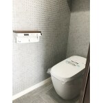 タンクレスの最新トイレに変更。壁紙も統一してシックなトイレに変貌しました。