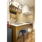 利便性を考え、1階で生活を完結させるプランを提案。水回りを見直し外の洗濯機を室内に。床壁の断熱に加え1階サッシ全てをペアガラスに変え、快適性、省エネ性能を向上。寝室以外はLDK1室にまとめ最大限の空間に。キッチンは無垢を選び、あえて壁付オープンにして家具のように見せ存在感を消しました。外に置かれていた洗濯機は洗面室にスペースを設けて納め、家事効率をあげています。