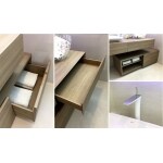 開け閉めもスムーズです。化粧品や小物がたっぷり収納できます。下に間接照明を設けました。