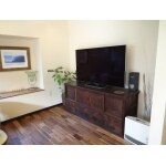広縁だった窓際も同じアカシア無垢材に。リビングに物が溢れないようにしっかりと物入れを新設しました。