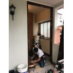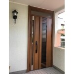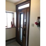 木製の立派なドア。 キレイにお手入れされていますが、もう少し便利に快適に使いたいとのことで、玄関ドアの交換をしました。