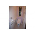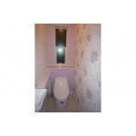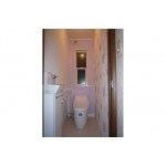 トイレ・内装をリフォームしました。 壁紙は、側面に大きな花柄模様をアクセントクロスとして施工。その他の壁・天井は白色クロスでまとめています。 背面は花柄と同系色のラベンダー色を用いたことで、安らぎと可愛らしさのある空間に仕上がりました。