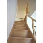 段板だけのストリップ階段などご希望イメージもいただきましたが、小さなお孫さん達の昇り降りにも安全で、階段下も収納スペースとして活用していただける仕様でご提案。