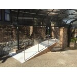 元の外構デザインを損ねない様、同一材料に近い物を使用し施工しました。安全性や距離の問題をケアマネージャーさんとお客様とで相談しながら施工しました。